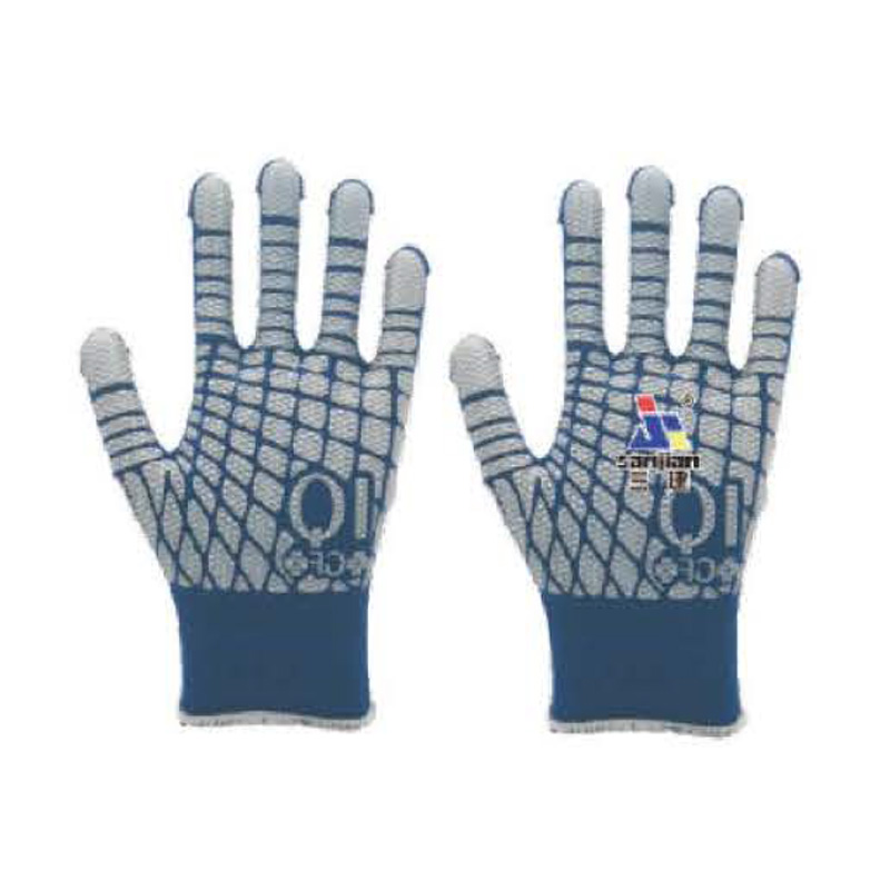 Los guantes cuentan con puntos pequeños, de goma o PVC en la palma y los dedos, ofreciendo una fricción mejorada. Esta textura punteada está diseñada para mejorar las capacidades de manejo, incluso cuando se trabaja con objetos resbaladizos o grasientos.